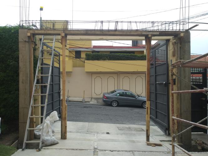 Reparar el techo de doble agua de la marquesina (tiene un agujero), colocar teja que se quito ó desprendió. Limpiarla y barnizarla. Alizar la superficie de techo parte inferior y pecho de paloma. Reparar la cornisa y pintar de nuevo toda la marquesina en colores seleccionados por el cliente.