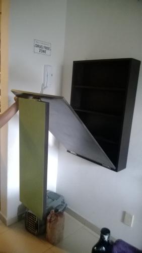 Armamos un respaldo de metal de una cama de ikea, este debe instalarse en la pared de concreto atraves de 6 tornillos que se tienen que perforar, intentamos hacerlo pero uno de los taquetes se rompió y atoro, por lo que también necesitamos esa reparación para hacer la instalación.