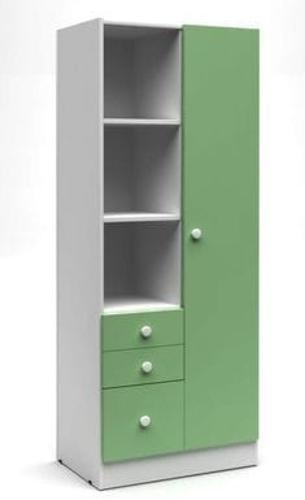 Un closet de diseño sencillo, de tres módulos principalmente 2 a los lados para colgar ropa, en la parte central cajones y en la parte de hasta arriba y a los lados donde va colgada la ropa un espacio que queda sobrante maletero o petaquero, puede ser en puertas individuales o corredizas, elaborado en madera o melamina