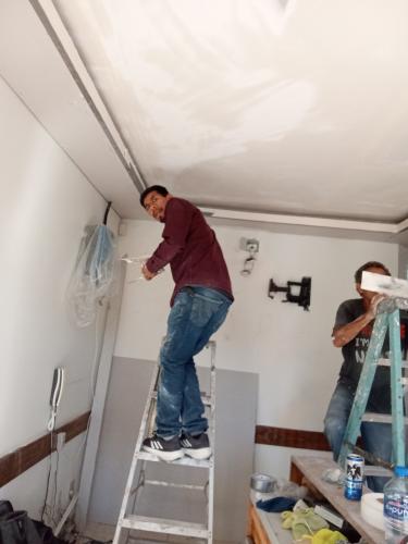 Trabaja rápido pero no trae implementos para cubrir la zona, tampoco para pintar tuvo que ir a comprar un cepillo y nos pidió brochas y demás.. también para cubrir el espacio y sin eso queda un...