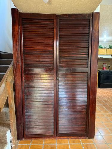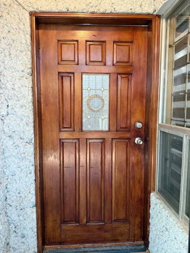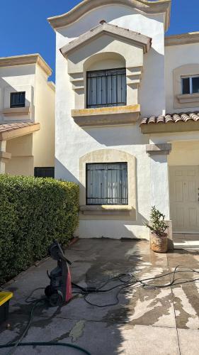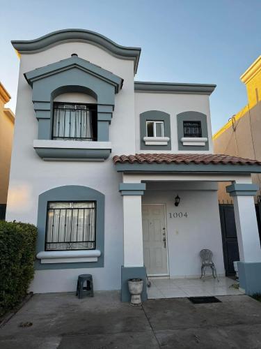 Es una casa de dos pisos en chihuahua, chihuahua, hay una ventana en cada pared